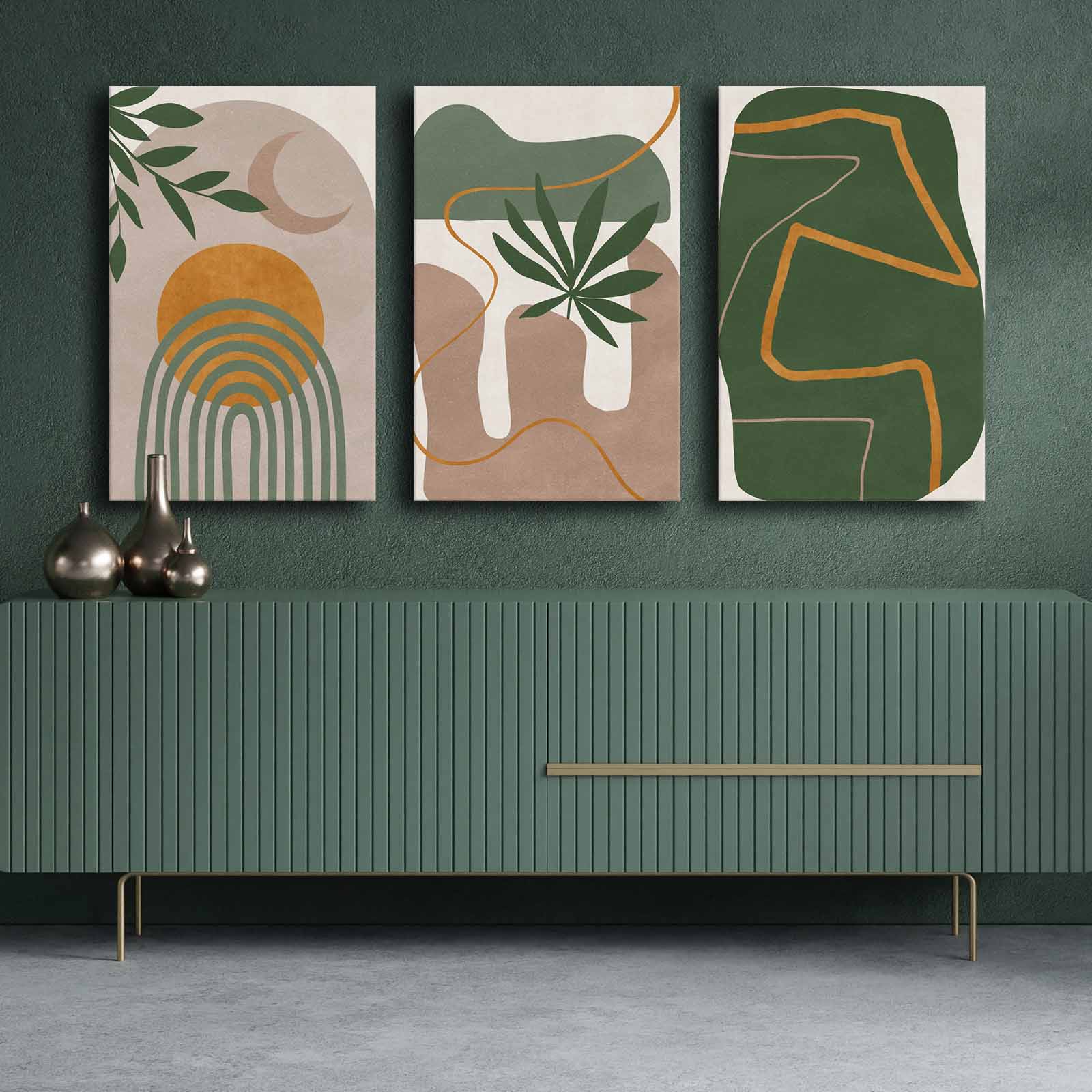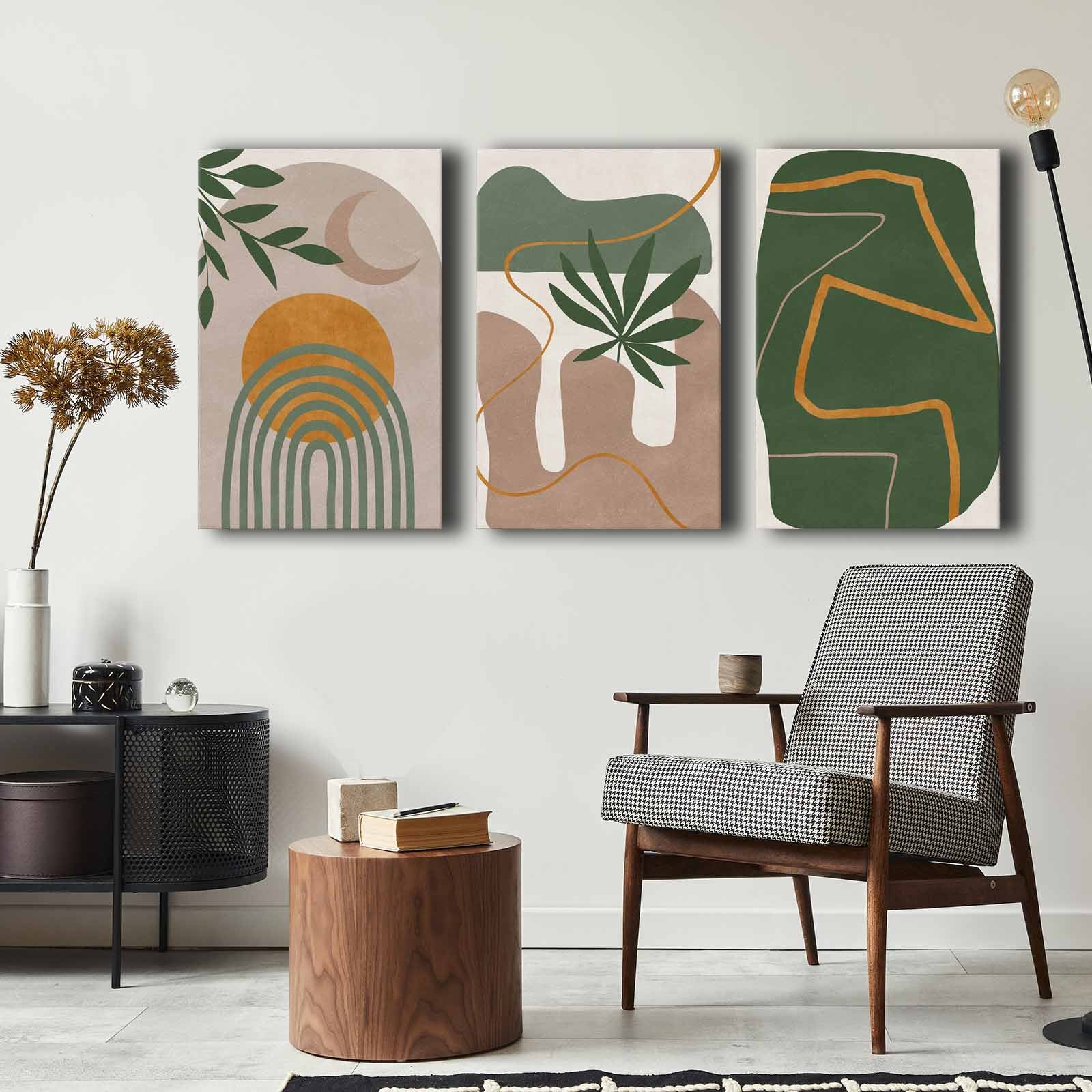 3 PIECE MOON, SUN AND LEAVES MODERN CANVAS PAINTING